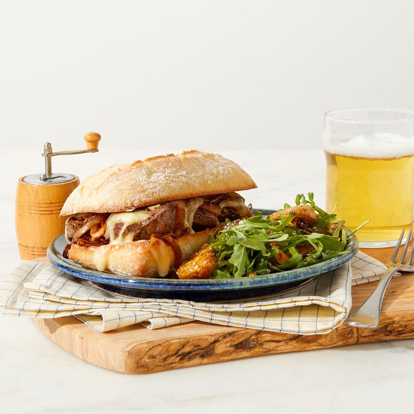 Recipe Cheesy Truffle Steak Tip Sandwiches With Arugula Potato Salad Blue Apron